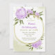 purple flowers greenery wreath birthday party invitation