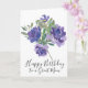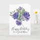 Gorgeous purple watercolor flowers bring your birthday wishes for your mum. The purple flowers have both light and dark purple petals and look beautiful against the green leaves. Happy birthday to a great mum is written below in a modern script text. Feel free to change the greeting.