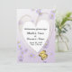 Purple Flowers, Heart Frame, Rings, Wedding Invite