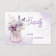 Add a touch of rustic elegance to your wedding stationery with this Purple Flowers in Mason Jar Floral Wedding Details Enclosure Card. Featuring a charming illustration of lush purple blooms delicately arranged in a classic mason jar, this design perfectly blends country charm with timeless sophistication. The soft watercolor florals, accented by hints of green foliage, create a romantic and inviting aesthetic that complements any wedding theme, from garden-inspired celebrations to rustic barn venues.