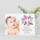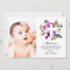 Purple Flowers Photo Baptism Thank You Card
