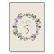Purple Flowers Romantic Calligraphy Wedding Table Number