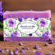 This soap band features purple flowers and green leaves in the background with space for your ingredients, business name, and website.