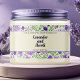 A waterproof label for cosmetics and/or soap products with a tan background and purple flowers and green leaves. Customise it with your business and product information. This label measures 8.25 inches by 1.75 inches (209 mm by 44 mm) and is suitable for jars with a diameter of 2.6 inches (66 mm) or more and a label height area of at least 2 inches (50mm). Most 8 oz (240 ml) and 16 oz (480 ml) jars fit this description, but check the jar specifications to be sure. This label makes a great choice for packaging beauty products that require larger labels like sugar scrubs, body butters, and thick lotions and creams.