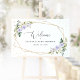 Purple Flowers, White Flowers, Baby Shower Welcome Poster