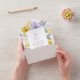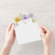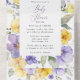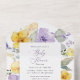 Invite friends and family in style and set the tone for your special day with this charming baby shower invitation. Design features purple and yellow watercolor flowers and greenery on white background.