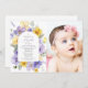 Invite friends and family in style and set the tone for your special day with this elegant baptism invitation. Design features purple and yellow watercolor flowers and greenery on white background.