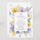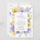 Invite friends and family in style and set the tone for your special day with this charming birthday invitation. Design features purple and yellow watercolor flowers and greenery on white background.