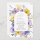Invite friends and family in style and set the tone for your special day with this charming birthday invitation. Design features purple and yellow watercolor flowers and greenery on white background.