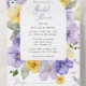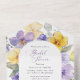 Invite friends and family in style and set the tone for your special day with this charming bridal shower invitation. Design features purple and yellow watercolor flowers and greenery on white background.