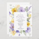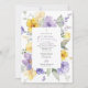 Invite friends and family in style and set the tone for your special day with this elegant first holy communion invitation. Design features purple and yellow watercolor flowers and greenery on white background.