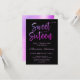 Sweet 16 Purple, Pink and Black Modern and Elegant Brushed Metallic Sweet Sixteen Birthday Party Invitation. This Sweet Sixteen invitation is perfect for the Girly Girl looking to celebrate in style. If you need additional matching items, please contact the designer.