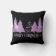 Purple Foil Look Metallic Merry Christmas Tree Cushion