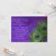 Use these awesome peacock wedding invitations to invite your friends and family to your wedding. This peacock feather design on your cards will add a special touch to your peacock themed wedding. This still life has a very unique purple foil background with peacocks feathers. The colours of the peacock feathers are vibrant and look amazing. Each invitation comes with a white envelope.