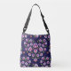 Purple folk flowers, heart shaped crossbody bag