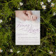 Baby memorial announcement you can personalise with a photo. Forever in our hearts written in a soft shade of purple. Add your angel's name and birth stats along with information about a service. On the back you can add a prayer or poem to honour your beloved angel.