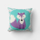Kids who love foxes and bright, fun designs will love this cute fox throw pillow featuring a purple chevron stripe fox on an aqua blue circle with a chevron striped aqua, grey, and white background. Perfect for her bedroom, the playroom, nursery, or recreation room, this fox pillow is sure to be a great addition!