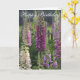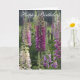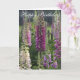 Happy Birthday card. Purple Foxglove flowers in a cottage garden Sand Designs Say it with Flowers collection. Bold purple flowers in soft subtle shades of purple and pink. A beautiful greetings card to customise with your own personal message. Perfect card for mum, mother, Gran, Grandma, anniversary, on their birthday or just to say thank you. Customise with your own text message or personalise with your name. Also available as a poster.