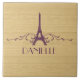 Elegant and chic French Flourish Tile featuring a faux woodgrain look background and an Eiffel Tower design in purple adorned with cascades of stylish swirls. This girly and trendy design is easy to customise with the personalised text of your choosing. Click "Customise It" to find more personalisation options.