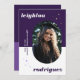 Stand out from the crowd with this unique graduation announcement card featuring a photo in a rounded frame on a dark purple and white colour blocked background accented by stars with fun, retro-inspired trendy type highlighting the graduate's name. The colours can be customised to match your school colours.