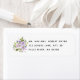 Featuring a watercolor flower bouquet made up leaves and roses in shades of purple.
