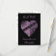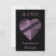 A large purple steampunk heart with gears and swirls on a black background on RSVP cards. The text is easy to personalise on these.