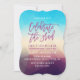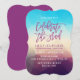 Celebrate the graduate with a modern party invite. The chic graduation party invitation features a purple and turquoise background with geometric shapes, faux purple glitter text, and solid purple background. Change the font style by clicking the "Customise It" button.