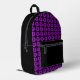 Travel with this stylish and trendy backpack that features the image of a purple Cranesbill Geranium flower on a black background and printed in a tiled pattern on front side only. A fun, floral design! Sides, back, and zippered pouch are black.