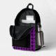 Purple Geranium Floral Pattern on Black Printed Backpack