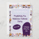 Halloween ghosts, jack-o-lanterns, bats and candy on a purple background to frame your party info. RSVP info on the back.