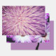 Gift wrapping paper with sheets that have images of purple flowers and hearts.