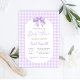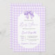 Purple Gingham Baby Shower invitation with bow, lavender gingham baby shower invitation