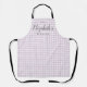 Custom kitchen apron feature classic soft lilac purple gingham check with personalized name and text. Great personalized hostess cooking aprons for her.
