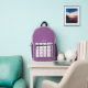Playfully painted purple gingham plaid stripes pattern printed backpack with optional personalisation.
