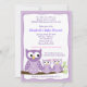 Purple Girl Twin Hoot Owls Baby Shower Invitation