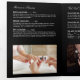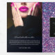 A deep, rich purple glittery background image provides a glamourous backdrop to this beauty-themed tri-fold brochure template. Your name or business name is elegantly styled in a faux silver trimmed frame for a classy logo. A creative design treatment for beauty salons, nail salons, makeup artists, hair stylists, event planners, skin care products and more. Update the customisable text to fit your brand, and personalise the details throughout the brochure for your own usage. All stock photos can be replaced with your own photos. These 5x7 brochures are perfect to display your price lists and menu of services, or describe your product line. A great marketing piece to hand out to potential clients to quickly introduce your business. Please contact the designer for help with special typesetting or layout variations. Art and design © 1201AM Design Studio | www.1201am.com