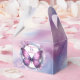 Lovely birthday favour boxes featuring a radiant butterfly, surrounded by a celestial aura and delicate floral accents. The butterfly, painted in hues of purple and pink, symbolises transformation and new beginnings - making it the perfect emblem for commemorating another beautiful year of life.