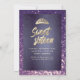Purple glitter chic Gold dress tiara Sweet 16 Invitation