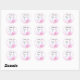 The outer edge of the sticker is PINK. The background is white. There are PURPLE AND PINK Glitter Confetti dots sparkling magically on the white background.