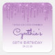 These chic 60th birthday party thank-you stickers feature a sparkly purple faux glitter drip border and purple ombre background. The words "Thank you for coming!" appear in purple. Personalise them with her name in handwriting script, along with her birthday and date below.