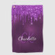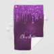 A deep purple background decorated with purple faux glitter drips, paint dripping look. The purple colour is uneven. Personalise and add a name, your monogram initials. The name is written with a hand lettered style script.