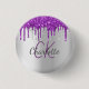 A faux silver metallic looking background decorated with purple and faux silver glitter drips, paint dripping look. Personalise and add a name, your monogram initials. The name is written with a hand lettered style script. Perfect as party favours or name tags for birthday parties, baby showers, bridal showers and bachelorette parties.