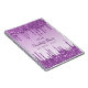 A purple, violet gradient background with deep purple glitter drips, paint dripping look. Personalise and add a year 2021 (or any year) a name and a title. The name is written in purple with a modern hand lettered style script. Perfect for business, school, diary, work or personal/family life.