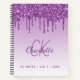 A purple, violet gradient background with deep purple glitter drips, paint dripping look.   Personalise and add your monogram initials, a name and a title. The name is written in purple with a modern hand lettered style script. Perfect for business, school, diary, work,  personal/family life.
