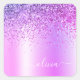 Purple Glitter Monogram Name Luxury Girly Square Sticker