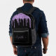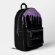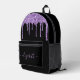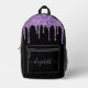 Personalised chic, elegant and girly black backpack with purple faux glitter drips. Personalise with your name in a stylish trendy light purple script with swashes. You can adjust the size of the script font in the design tool for shorter or longer names.