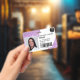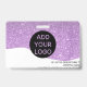 A modern, and professional purple glitter sparkles nurse photo id badge with logo and barcode horizontal layout.