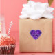 This custom sticker label features a romantic Valentine heart design. The background is a purple foil pattern with a purple glitter heart frame that borders the text. A "Happy Valentine's Day" greeting is printed in the centre in an elegant script font.