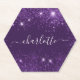 A stylish purple background. Decorated with faux glitter drips and glitter dust. Personalise and add a name.  The name is written with a modern hand lettered style script with swashes.