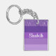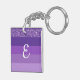 Purple Glitter Striped Monogram Key Ring